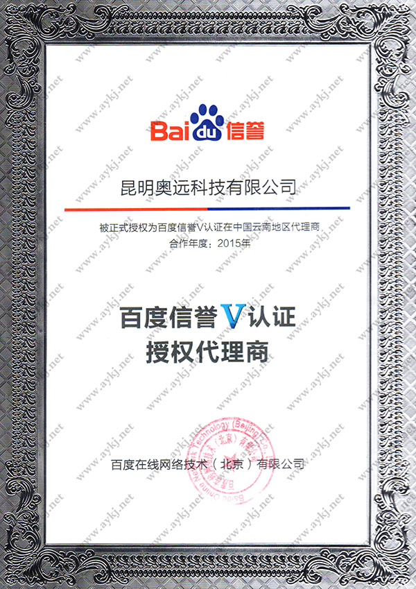 ? 成為百度信譽(yù)認(rèn)證云南總代理
