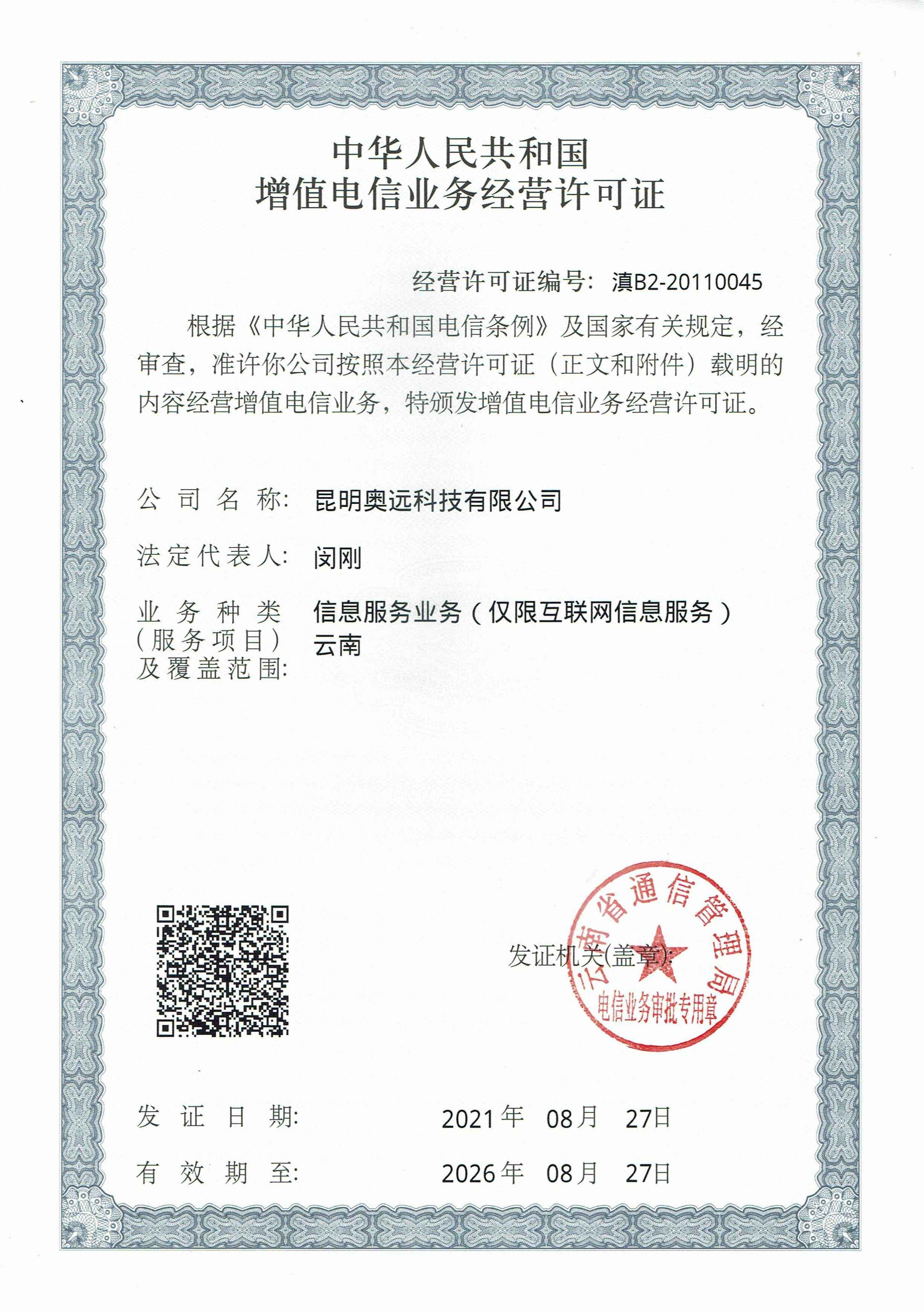 ?2008-2022 CORPORATION ALL Rights Reserved. 昆明奧遠(yuǎn)科技有限公司版權(quán)所有 滇ICP備09003328號(hào)-1 滇公網(wǎng)安備 53011102000818號(hào) 增值電信業(yè)務(wù)經(jīng)營(yíng)許可證號(hào):滇B2-20110045